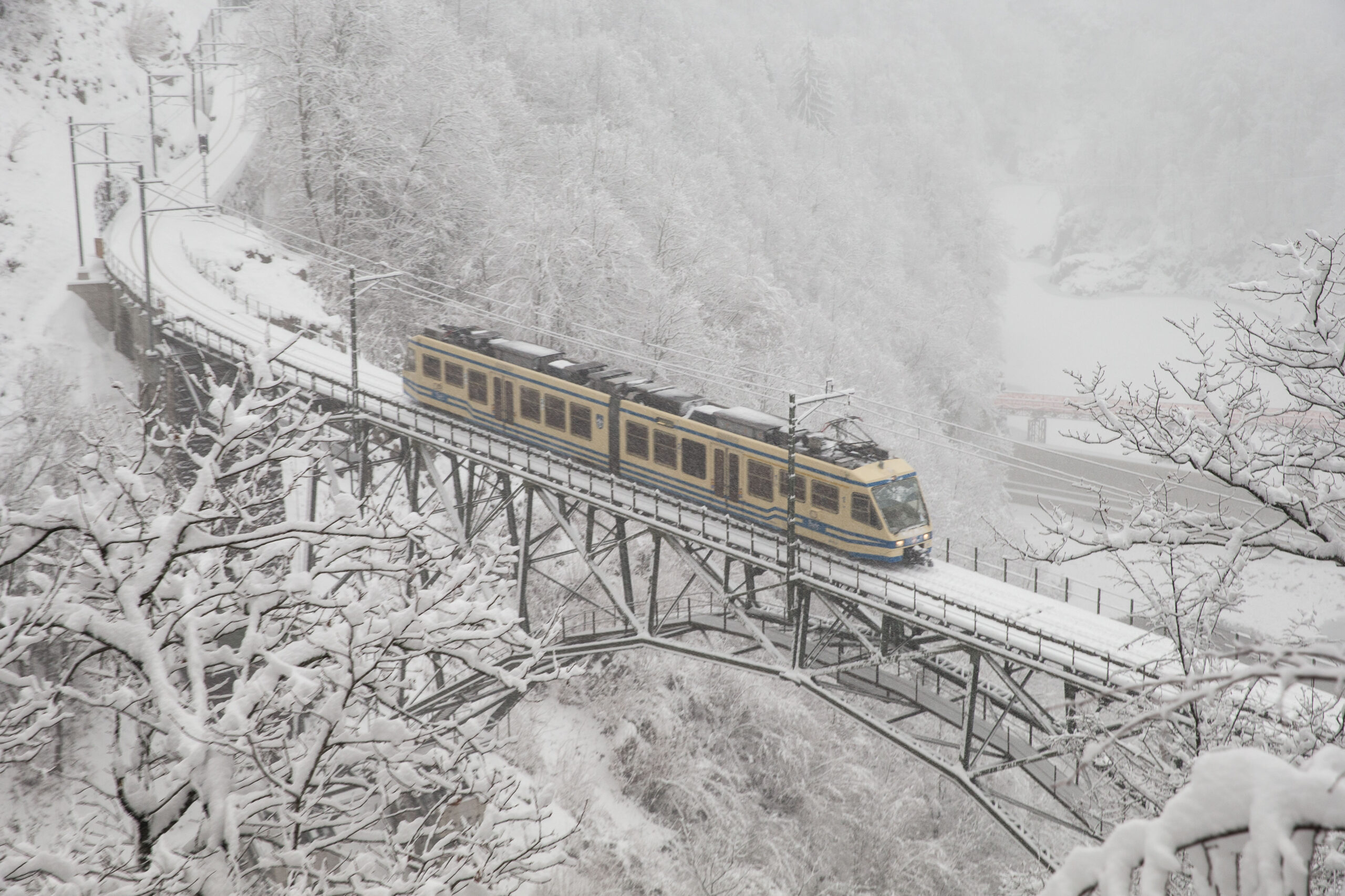 scorci invernali tra Italia e Svizzera. I treni, con una lunga storia alle spalle (la Ferrovia ha festeggiato nel